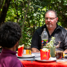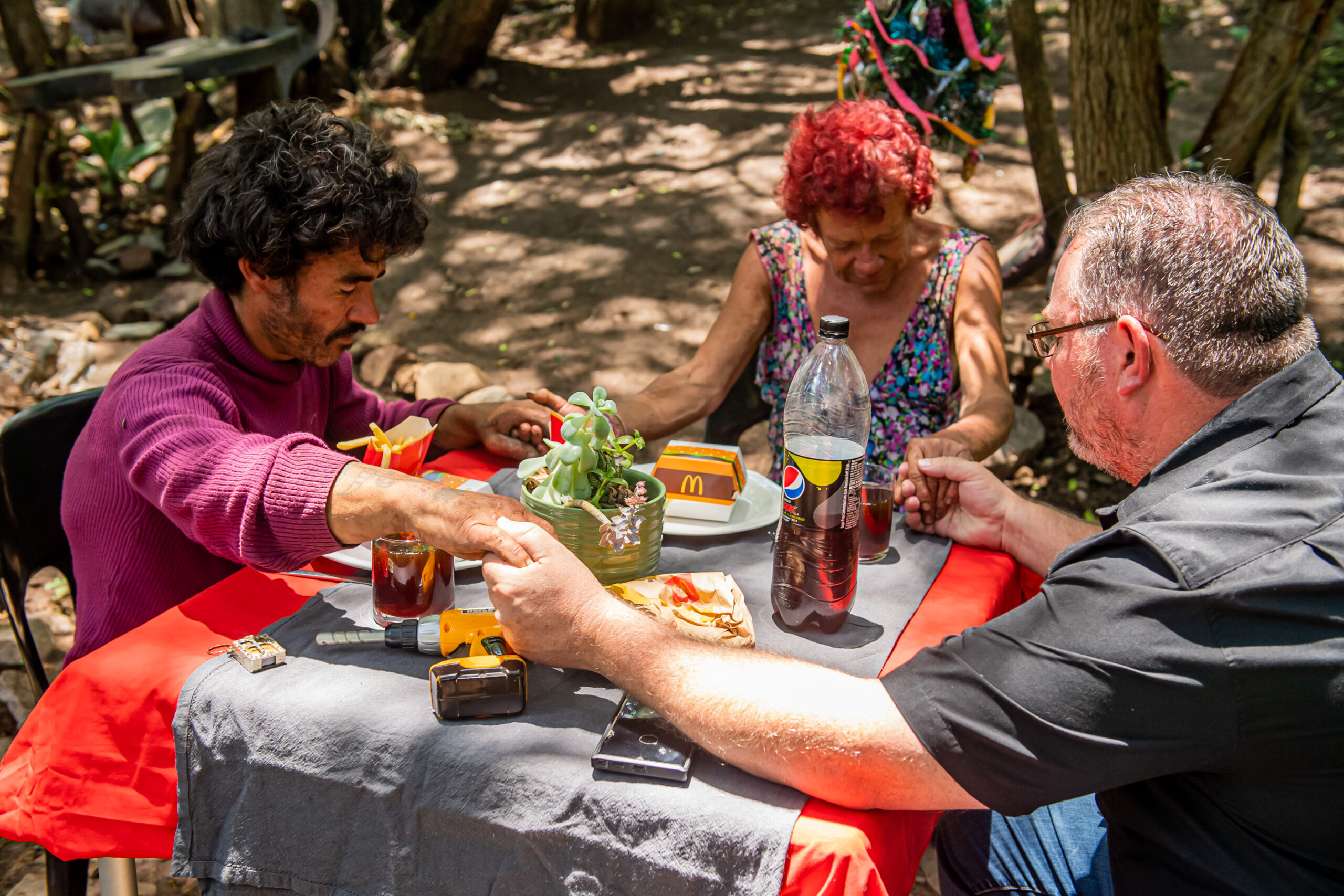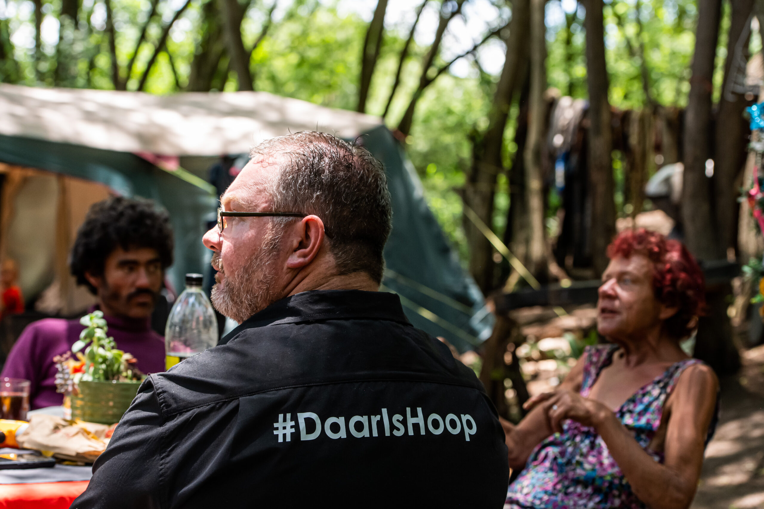 This table serves as a symbol of care and respect. We reach out to homeless individuals and invite them to join a meal at the little table. The initiative begins by setting up a small table with proper plates, cutlery, and even a pot plant.